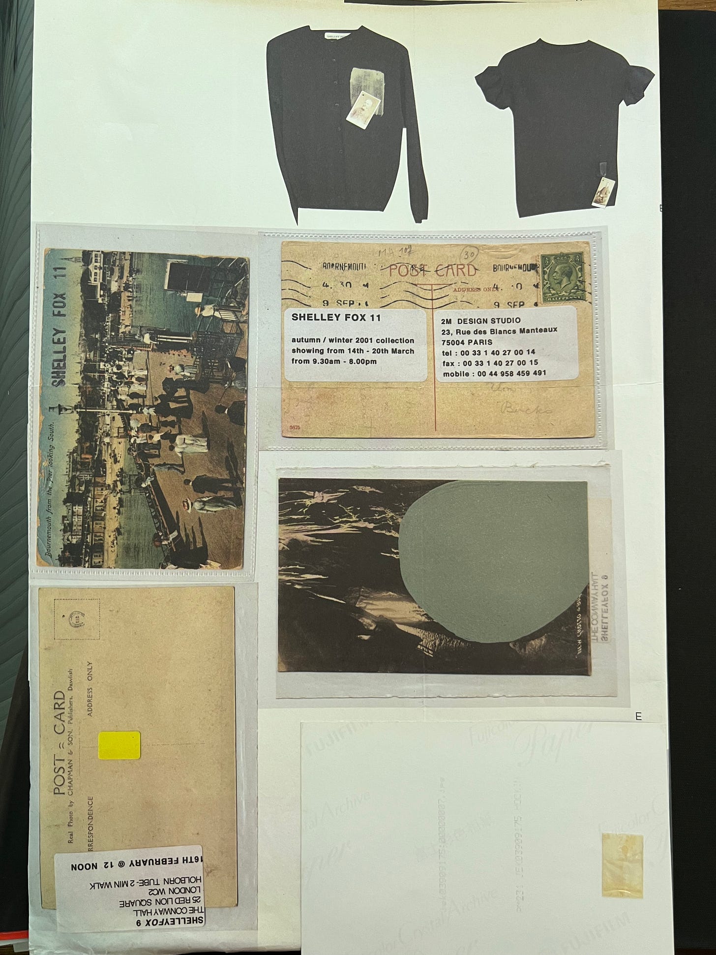 It was also a case of resources, or better, a lack thereof. When I graduated in 1996, things were generally still done analog, but I had no money to commission invitations. My first London studio used to be just off Brick Lane, for which you had to walk through Spitalfields Market. It was a very different place than it is now, still all rough around the edges. The idea behind the postcards was that if we bulk buy them, we would get a good cash deal. Scouring flea markets was a constant in my working process. Going through boxes filled with pictures of people’s families, thinking to myself: “God, I don’t want mine to end up here.” I was also hugely intrigued by cartes de visite, the first visiting cards from the 1800s. I’ve used this, what I like to call ‘found photography’, in multiple ways. As projections in shows or as tokens reminiscent of military references, you know, those coloured ribbons with medals attached, now ribbons with cartes de visite hanging from them. But then I got an order for about 200 items, so I had to go and source 200 19th-century cards. [Laughs]
